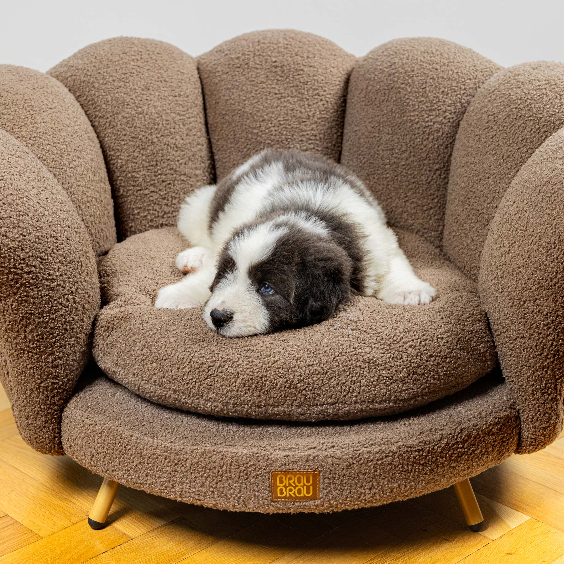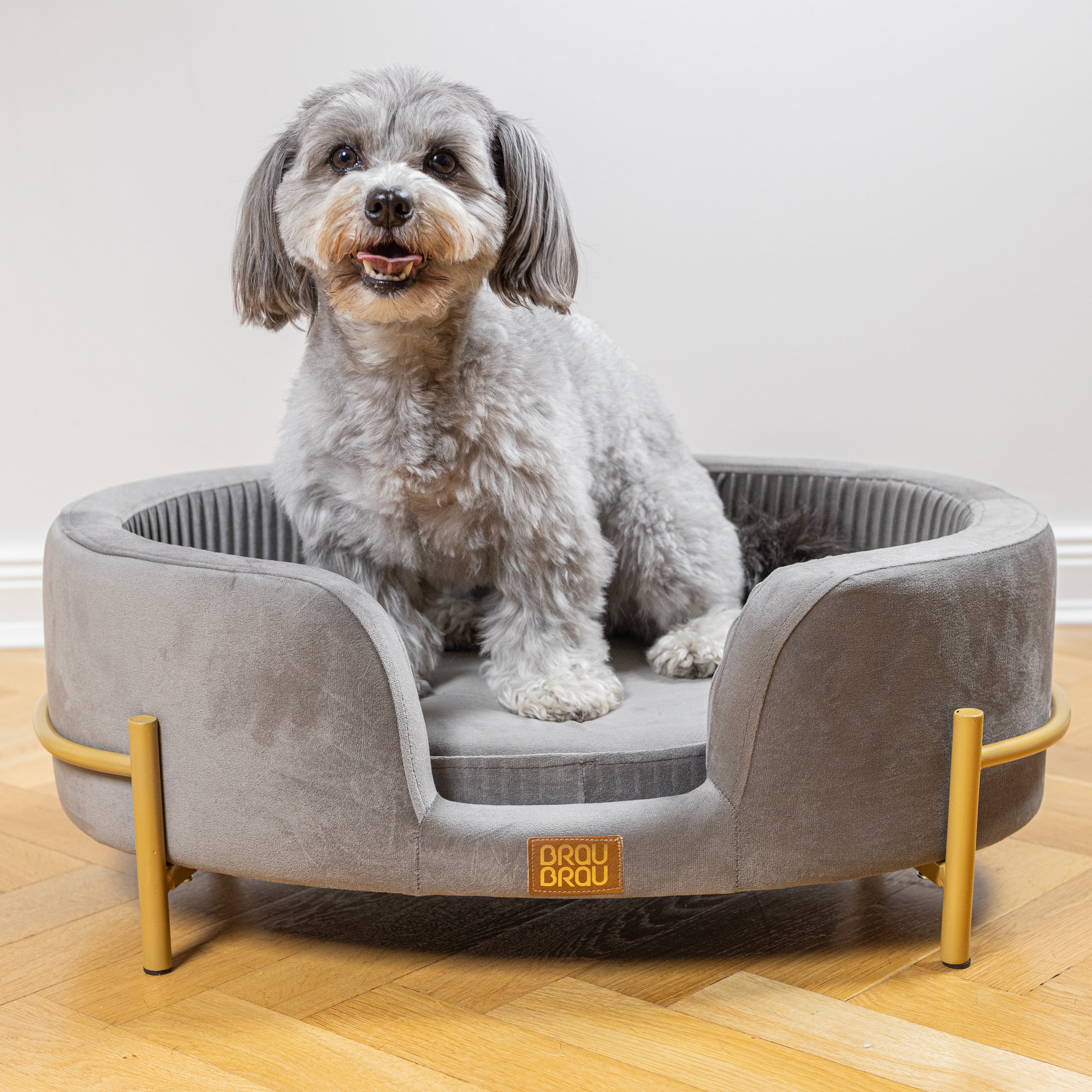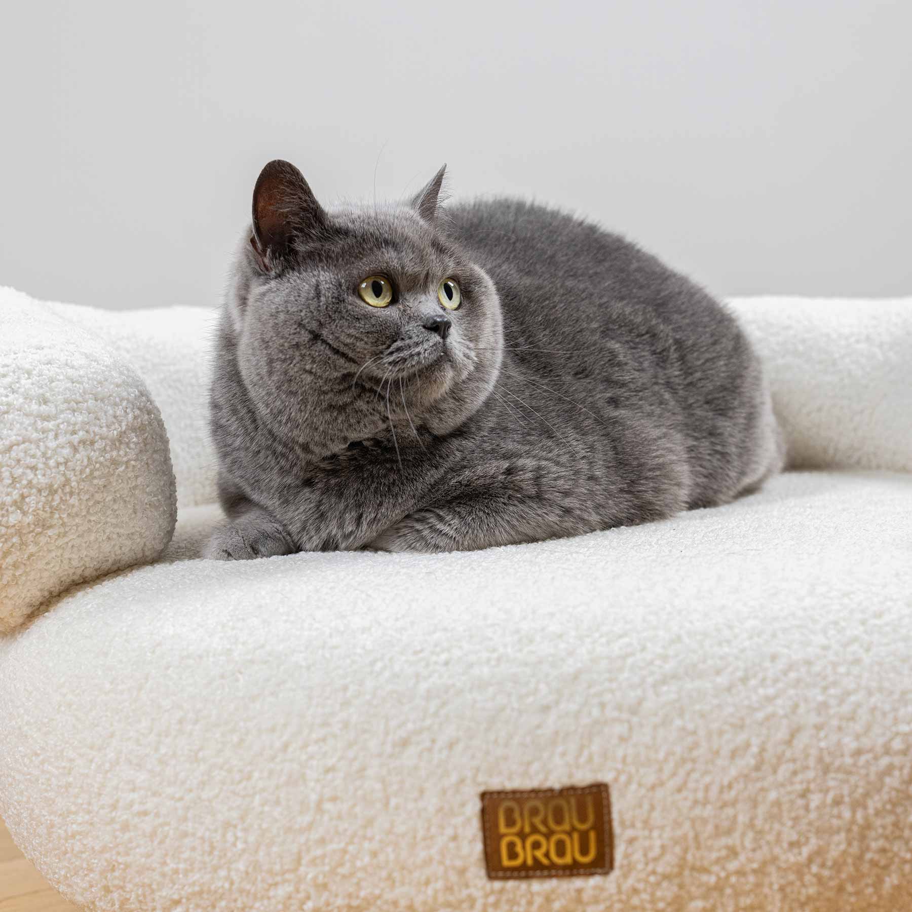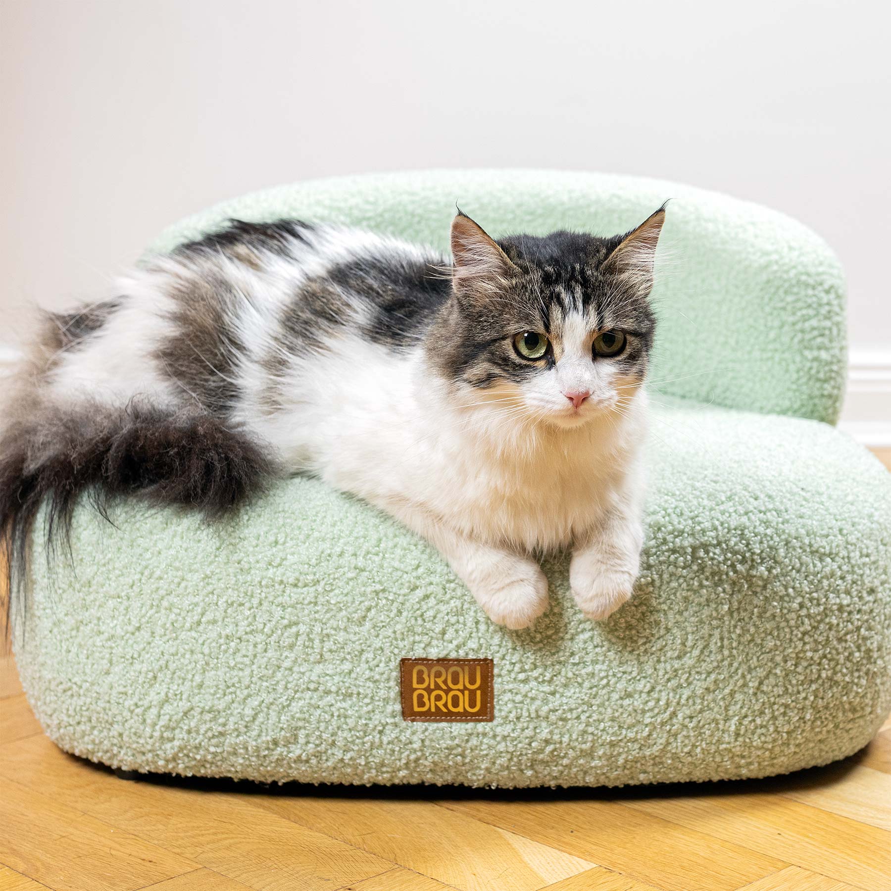 Discover BRAUBRAU sofas for dogs and cats. Choose from velvet, bouclé or oval/curved models, designed to easily integrate into your home decor. You have neutral or accent color options (beige, gray, green, black, yellow, brown).